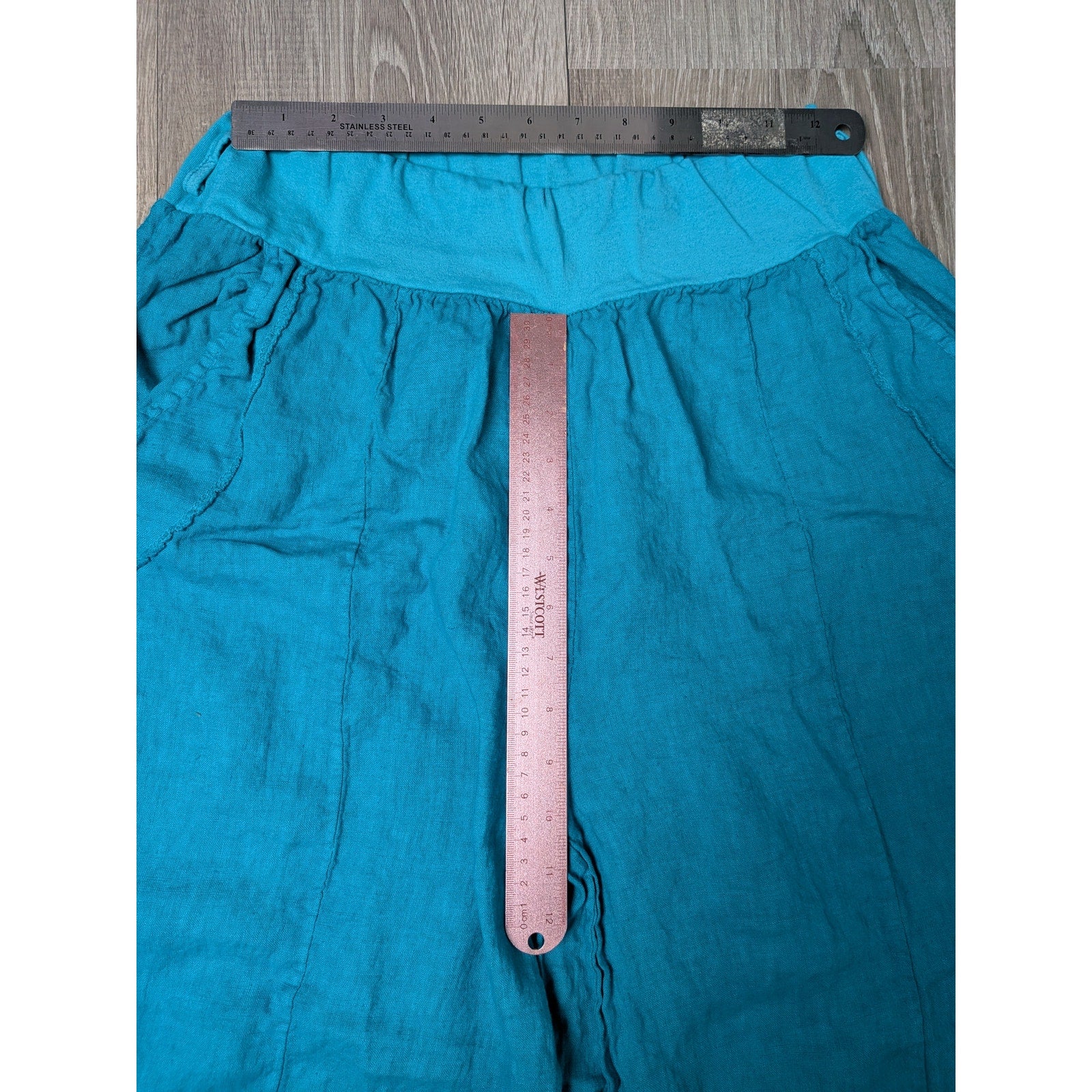 100% linen teal blue pants stretch waist unbranded 36L 24 W (stretchy) Small