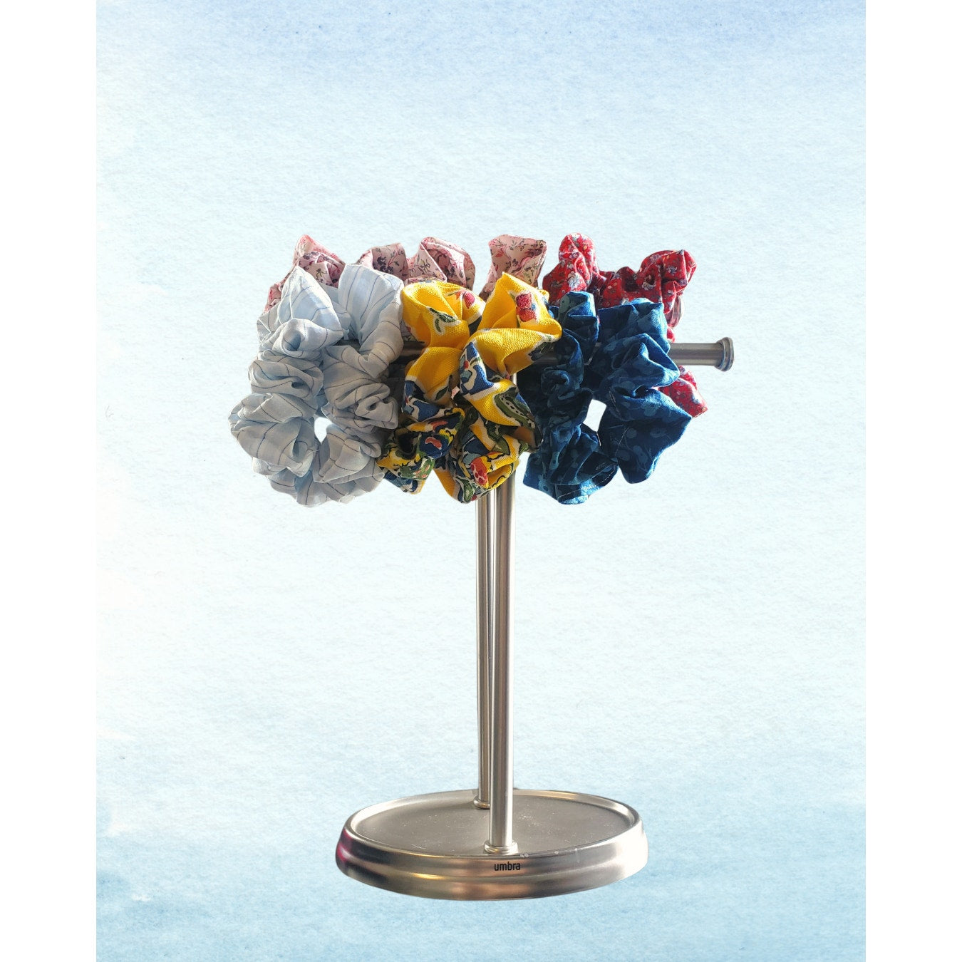 Each scrunchie is made from rescued cotton fabrics that I've recycled and sewn into a second life as a hair accessory. I hunt for fun and quirky patterns to make unique, one-of-a-kind looks that add a pop to your personal style.