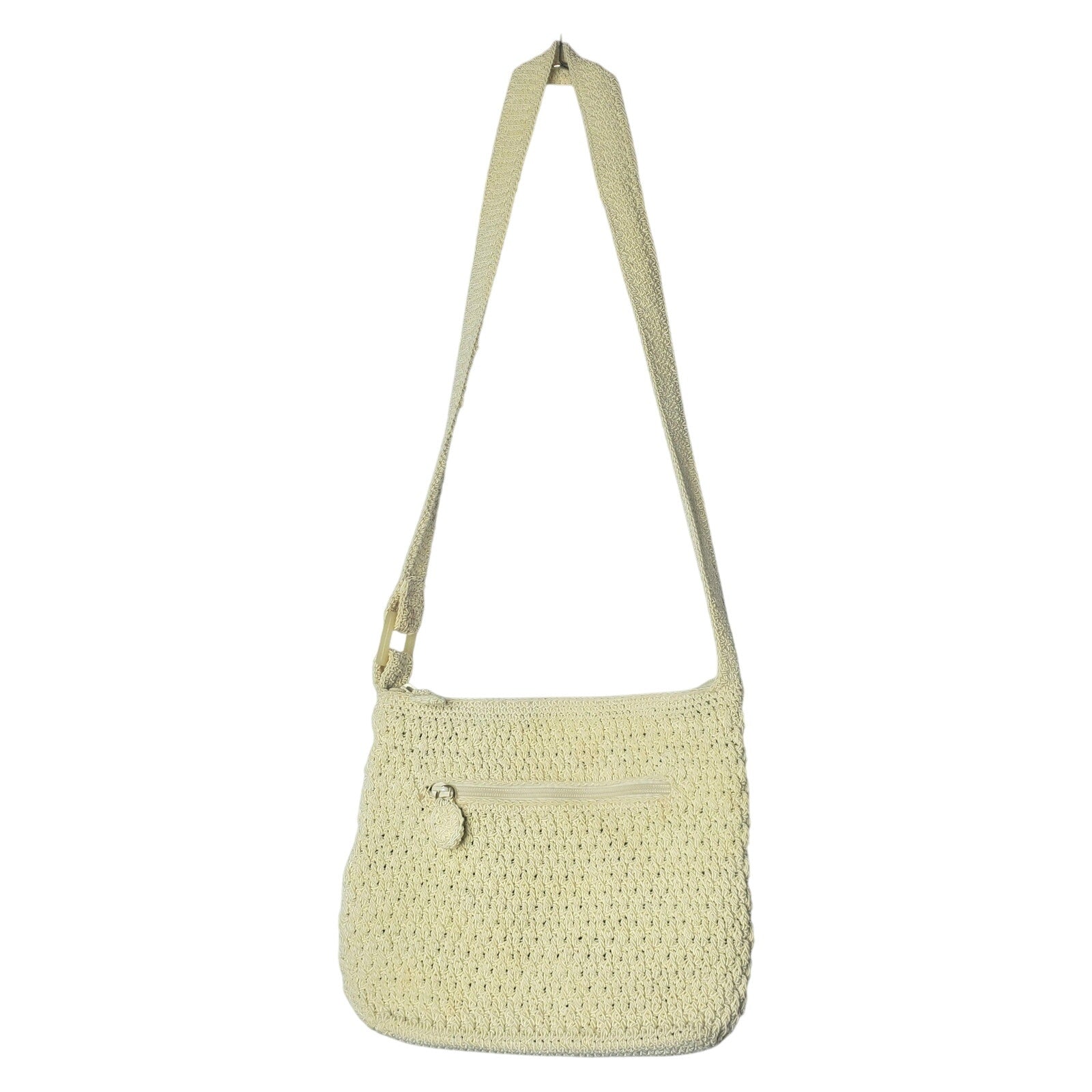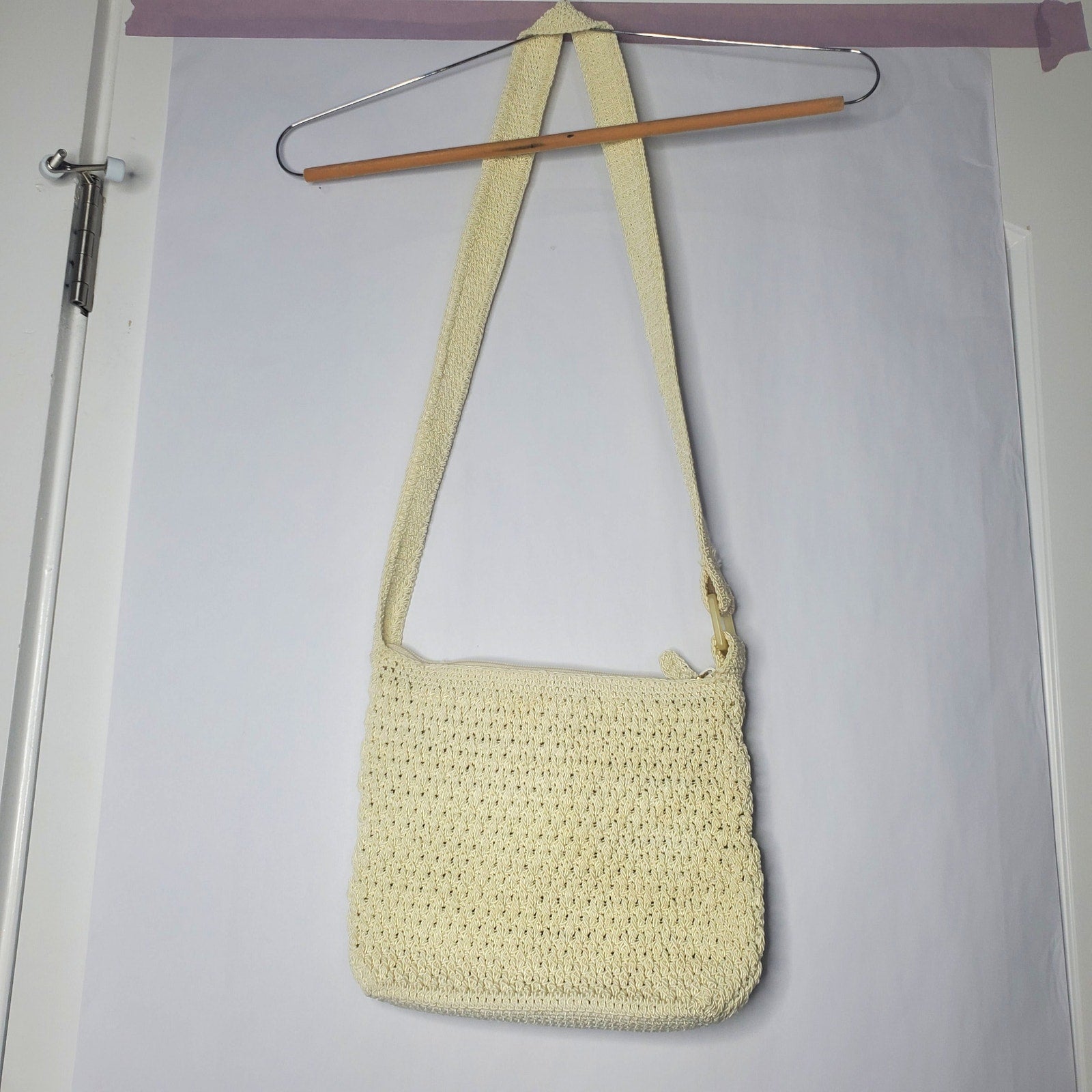 Cream crochet purse Liz Claiborne vintage woven knit white beach boho hippie