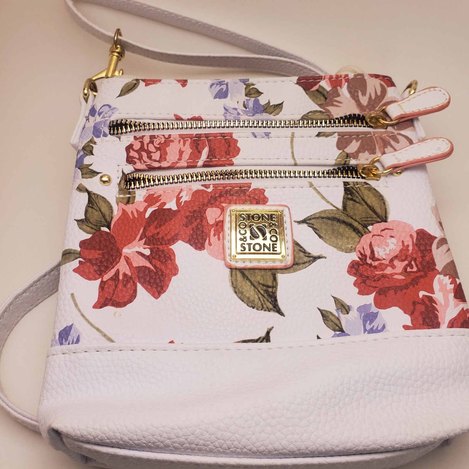 Floral pattern white stone mountain cross body purse bag spring light cute