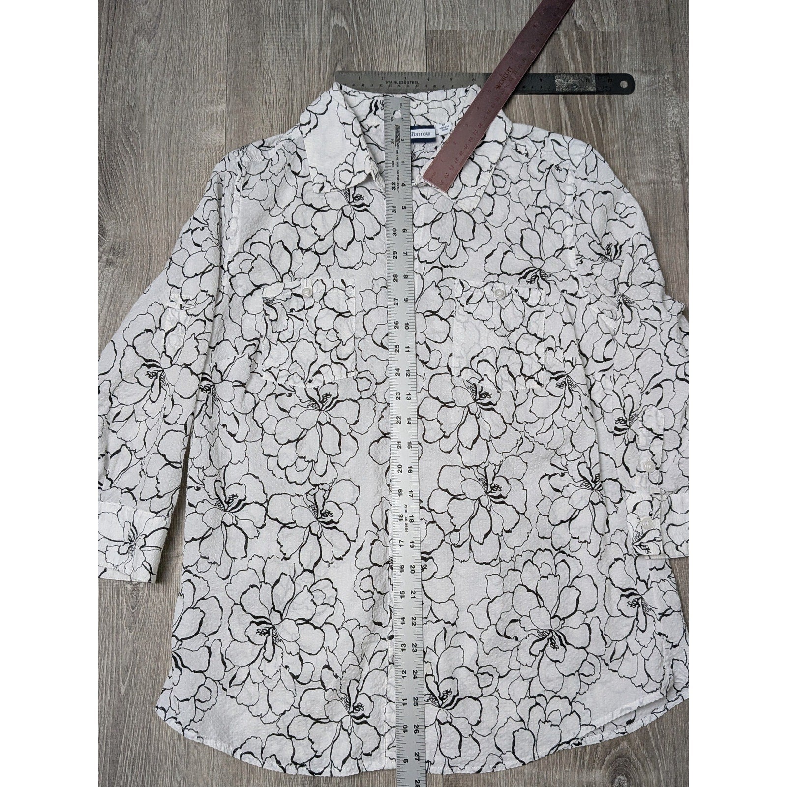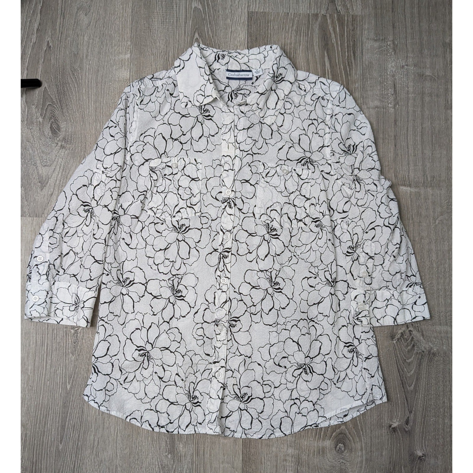 Vibes: business casual, office, office wear, women's button-up, feminine florals