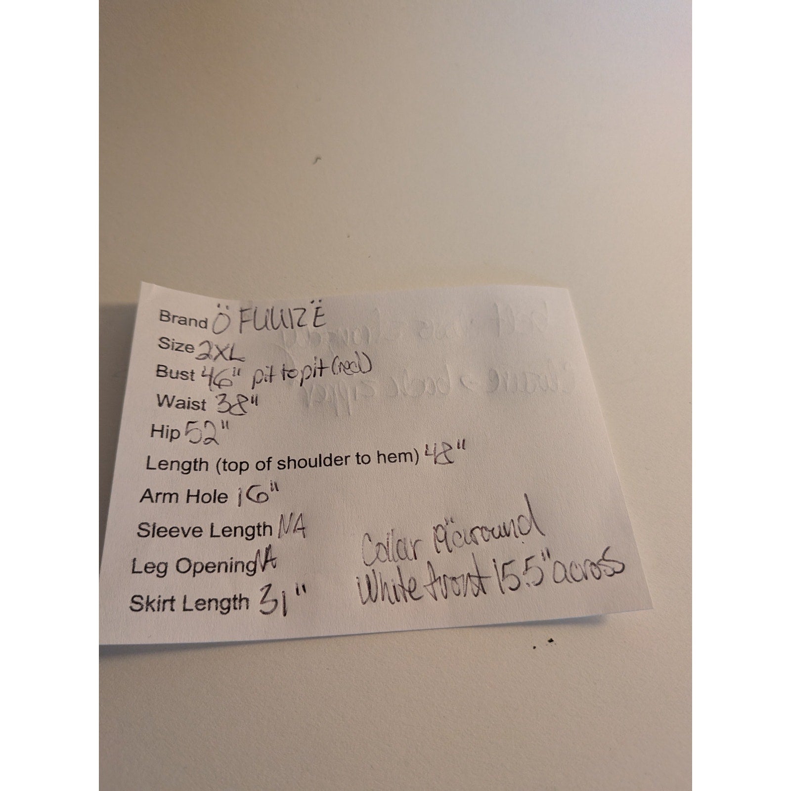 White top is 31" around at its widest point