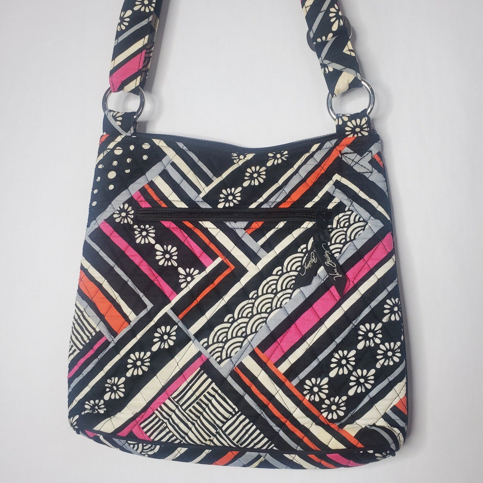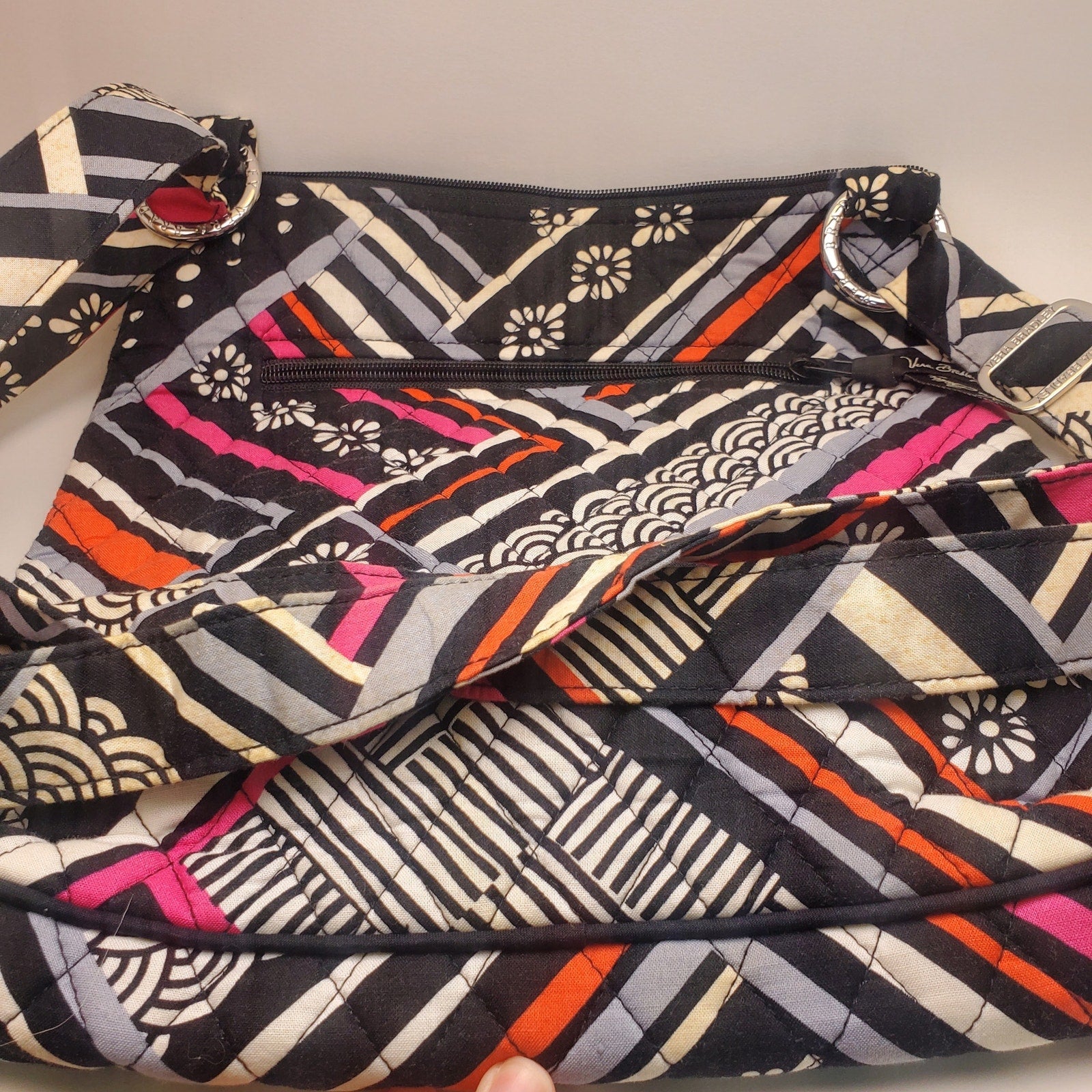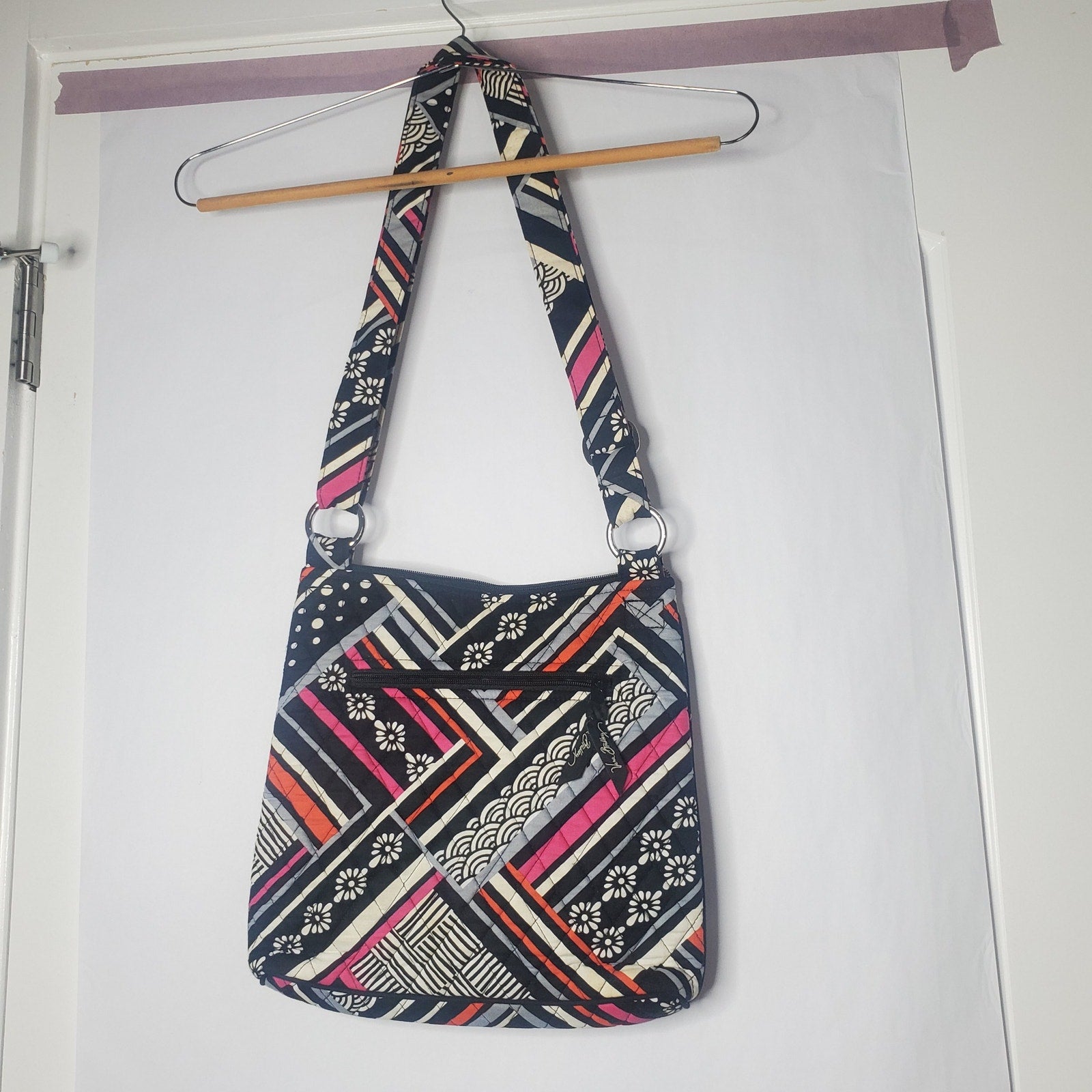 Funky, functional, fresh! Cute yet funky patterned style Vera Bradley crossbody bag. It's the perfect size for fitting everything you need but not being overburdened. The bag has a front zipper pocket, a back zipper pocket, and the main body zips close with 3 interior pockets along the side.